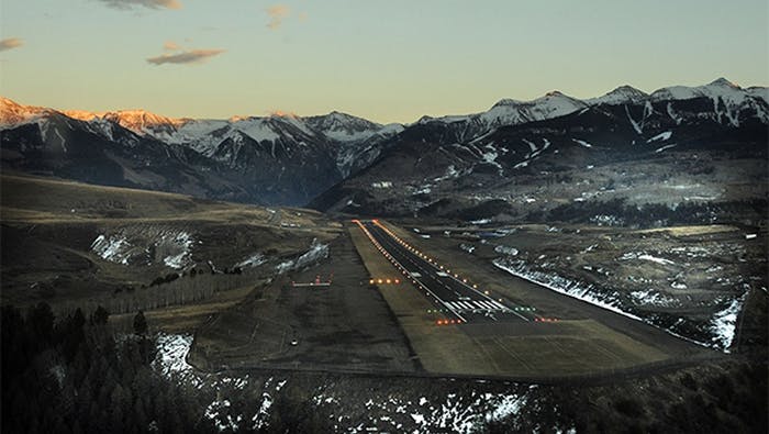 Situé à 2 767 mètres d’altitude, l’aéroport de Telluride est l’un des plus hauts aux États-Unis. Il peut représenter un défi pour les pilotes à l’atterrissage, à cause de sa piste pentue au milieu des montagnes.