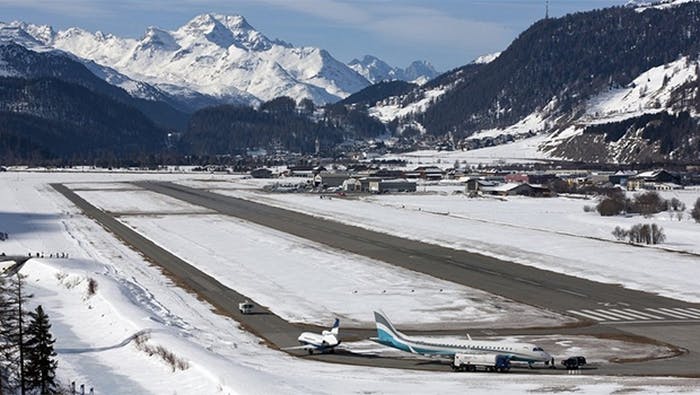 L’aéroport de Samedan St Moritz est le plus haut d’Europe. S’il était d’abord un aérodrome local, il peut maintenant accueillir les plus gros jets privés, avec une piste de 1 800 mètres de long à 1 707 mètres d’altitude.
