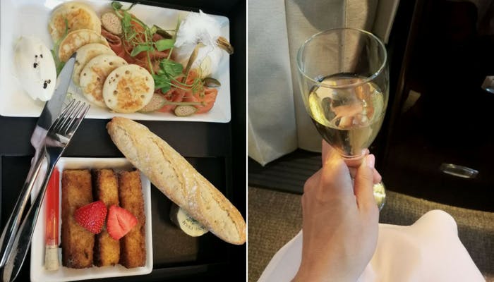 Dans le jet, profitez d’encarts ou d’un petit déjeuner complet accompagné de thé, café, et jus d’orange frais, ou de champagne si vous êtes d’une humeur festive.