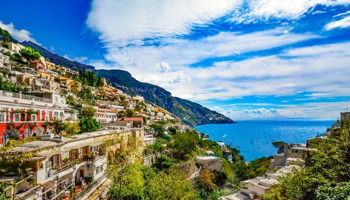 Les villages de la côte amalfitaine, surplombant de hautes falaises, offrent une vue imprenable sur la mer turquoise.
