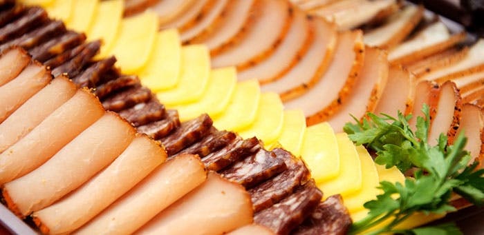 La charcuterie, comme le Prosciutto et le saucisson, est souvent servie lors des vols courts se déroulant pendant l’heure du déjeuner. Elle est généralement offerte avec de la salade et des amuse-bouches.