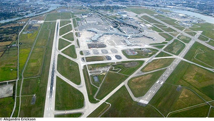 L’auteur Chloe Pantazi adore cet aéroport : « Vu d’en haut, cet aéroport a l’air d’être fabriqué en Lego : un chef-d’œuvre de géométrie au milieu de paysages naturels splendides… Le rêve pour tout fan d’aviation ! »