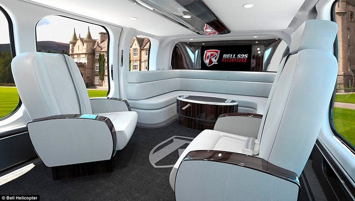 Technologie moderne, extra confort, cabine digne de l’intérieur d’une limousine, tout est prévu pour impressionner les passagers les plus exigeants. Et c’est pour cela que le Bell 525 a déjà trouvé de nombreux acheteurs avant même qu’il n’ait effectué son premier vol d’essai.