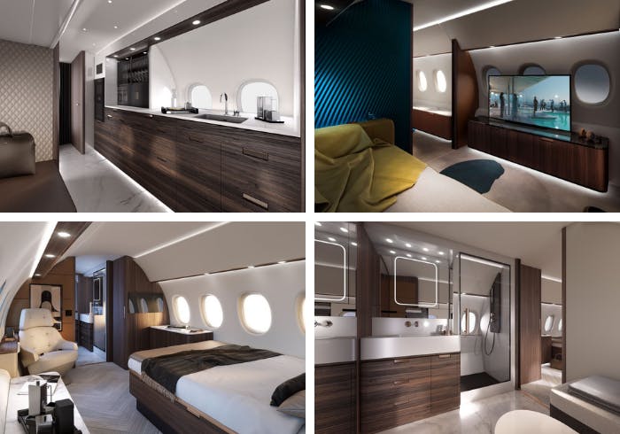 Selon Dassault, ce sera « la cabine la plus grande et la plus confortable du marché ». Outre ses 2.03m de hauteur sur 2.77m de largeur, l’intérieur se veut lumineux grâce à ses 38 fenêtres extra-larges et personnalisable avec ses 4 zones de taille variable.