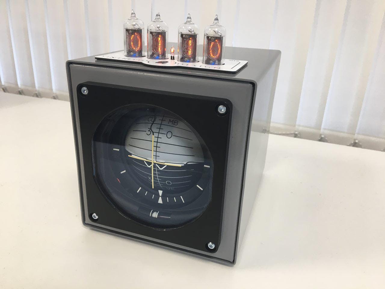 Cette pièce était à l’origine installée à bord d’un hélicoptère Westland Lynx datant des années 70. Restaurée, elle a été transformée en horloge Nixie parfaitement fonctionnelle, avec un boîtier fabriqué sur mesure et peint en gris RAF. L’horloge peut être réglée en format 12 ou 24 heures et change de couleur sur commande. Même sa luminosité peut être ajustée, notamment pour plus de confort la nuit.