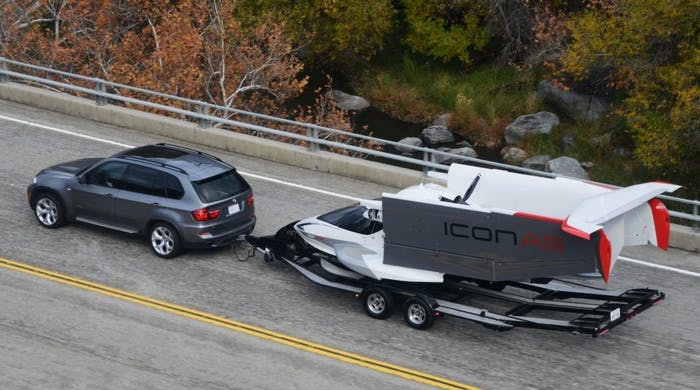 L’Icon A5 mesure 10,36 mètres de large, mais ses ailes sont rétractables afin qu’il puisse être garé comme une voiture, ou tracté sur une remorque.