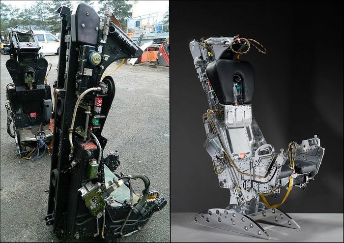 « Fondée en 1934 et toujours installée dans le Buckinghamshire au Royaume-Uni, la société Martin Baker est considérée comme un leader dans la technologie et la fabrication de sièges éjectables. Ce siège en particulier a été acheté en Allemagne après qu’il ait été décommissionné par la Luftwaffe en 1994.