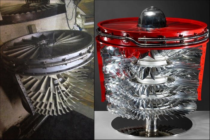 La pièce terminée met en valeur les 179 lames de la turbine dans l’enveloppe du moteur d’origine. »