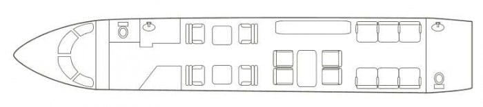 Il peut accueillir 14 passager à bord et dispose de deux salles de bain. Les passagers peuvent emmener avec eux jusqu’à 16 valises. Ses sièges sont également convertibles et peuvent se transformer en 5 à 6 lits.