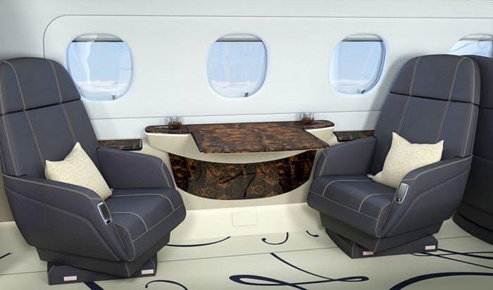 La cabine peut asseoir huit personnes et elle est dotée de toutes les nouvelles technologies en matière de divertissement. Elle a notamment des écrans tactiles à haute-définition et offre la possibilité de connecter son iPhone ou son iPad.