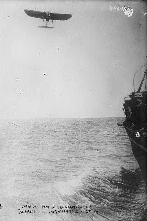 En juillet 1909, la course à la traversée de la Manche par les airs est serrée entre les aviateurs de l’époque. Et c’est Louis Blériot et son Blériot XI qui effectuent la première traversée des Baraques à Douvres.