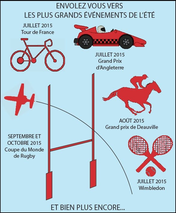 Pour réserver un jet privé pour voir le Tour de France, Wimbledon, la Coupe du Monde de Rugby ou tout autre évènement sportif et culturel, écrivez-nous ou contactez-nous au +33 1 70 70 77 87.
