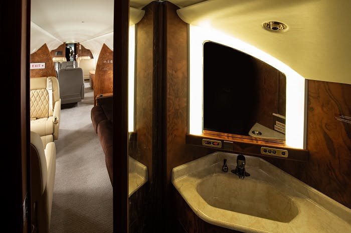 Les configurations sont entièrement à la carte et certains avions VIP comptent jusqu’à 5 salles de bain, avec parfois un spa ou un hammam intégré. Le plus souvent toutefois, une salle de bain et des toilettes sont installées en milieu de cabine et une douche privée fait partie de la suite VIP à l’arrière de l’avion.