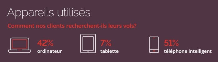 La plupart de nos clients souhaitent trouver la meilleure option rapidement et simplement, et réservent souvent leur vol quelques jours, ou même quelques heures, avant leur départ. Au même trimestre, 29% de leur client réservaient leur vol le jour même ou la veille de leur départ et 56% réservaient leur vol dans la semaine précédant leur départ.