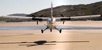 Situé dans les Hébrides en Ecosse, c’est le seul aéroport où les petits avions à hélices ne peuvent décoller qu’à des heures très précises, lorsque la marée est basse. À marée haute, la piste est recouverte par la mer.