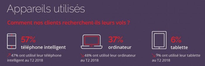 Sans surprise, nos clients sont également de plus en plus digitalisés. 57% d’entre eux ont effectué une recherche de vol depuis leur téléphone (contre 47% en 2018) et de plus en plus d’entre eux utilisent directement notre application mobile.