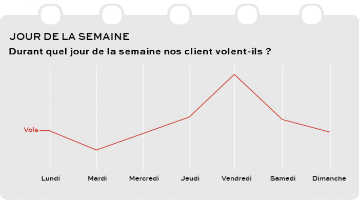 L’importance du vendredi comme jour de départ démontre l’importance des vols de loisir ce trimestre. Cette tendance est confirmée par l’augmentation de la proportion d’enfants parmi les passagers.