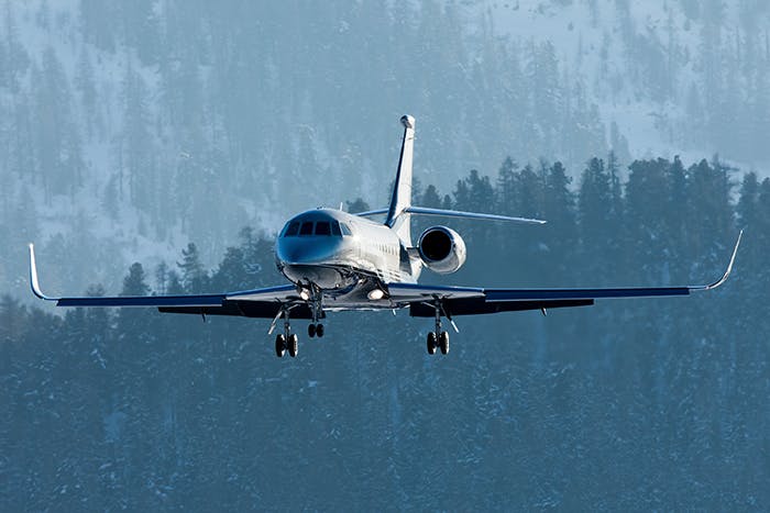 Le Falcon 2000 (10 places et rayon d’action de 5 510 km) est actuellement le plus affrété des avions Dassault.