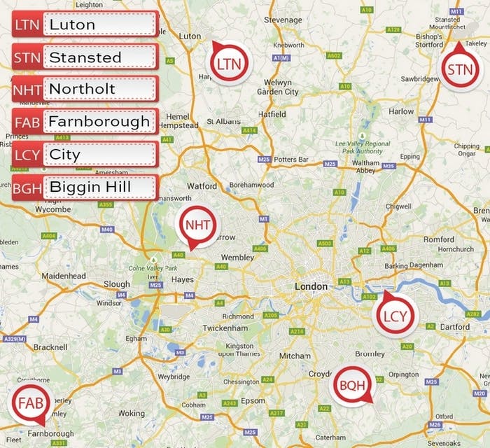 Londres est l’une des villes les plus fréquentées en Europe par les jets privés, et elle est entourée de 14 aéroports. Pas évident donc de savoir où se rendre pour profiter de Buckingham Palace, ou pour une réunion d’affaires à La City.