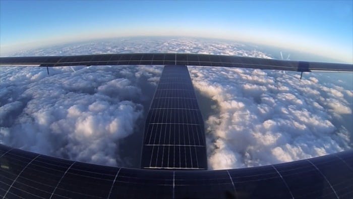 Solar Impulse 2 est un avion d’une tonne et demi aussi large qu’un Boeing 747 capable de voler à une vitesse moyenne de 80 km/h sur de longues distances, tout cela grâce à 17 000 cellules photovoltaïques placées sur ses ailes qui emmagasinent l’énergie solaire : une véritable prouesse technologique.