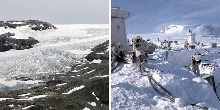Plusieurs scènes mémorables de la bataille de Hoth ont été tournées en plein blizzard sur le Hardangerjokulen, sixième plus grand glacier de Norvège.