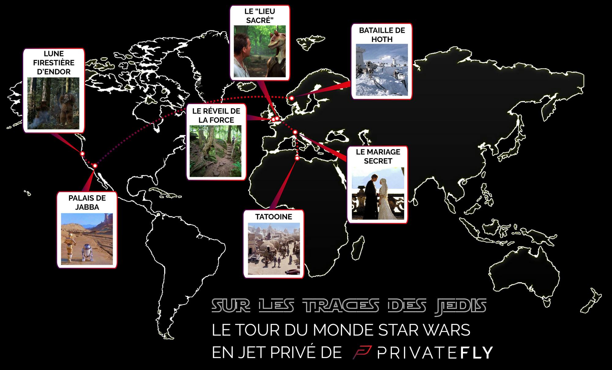 Pour faire le tour du monde sur les traces des Jedis, ou pour toute autre demande de vol, contactez-nous via notre site ou au +33 1 70 70 77 87.