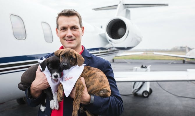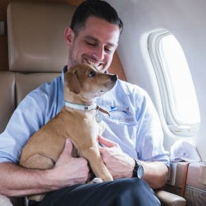 Nous avons donc fait monter à bord quelques-uns des chiots du refuge de North Shore Animal League America afin qu’ils profitent de l’aviation sans stress en montant à bord d’un jet privé.